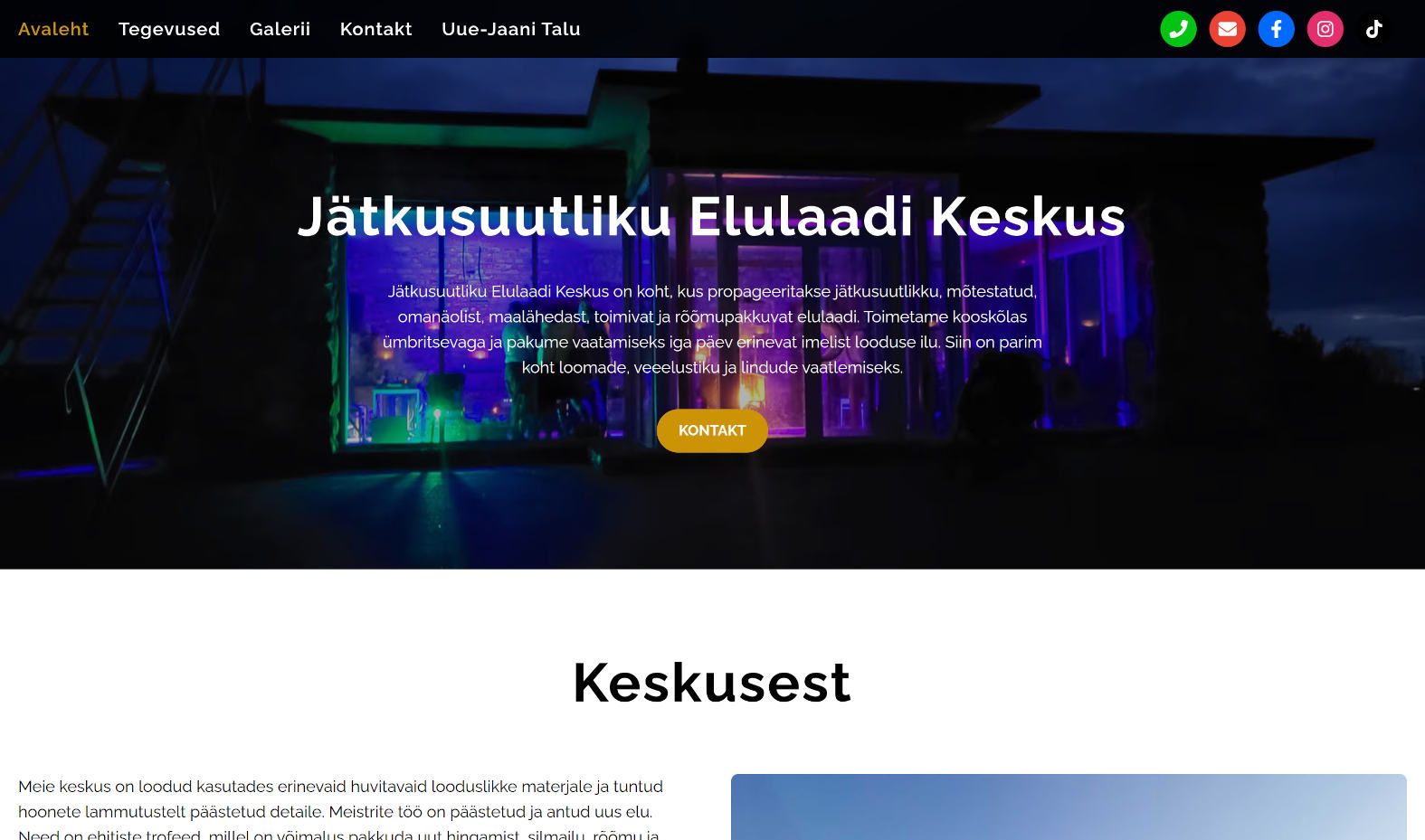 Jätkusuutliku Elulaadi Keskuse veebileht.